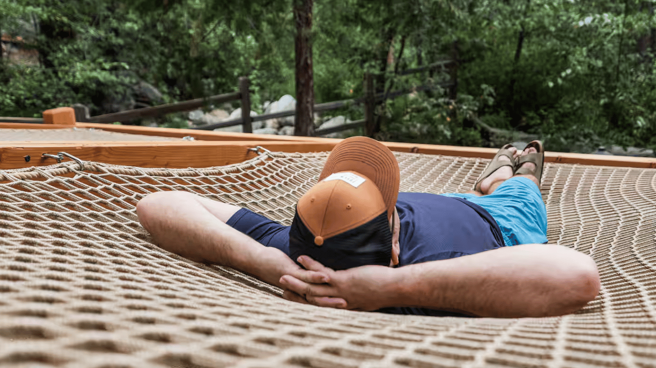 The design philosophy follows suit. Amenities aren’t built around tech or entertainment, but around nature: stargazing hammocks, picnic tables, and cozy gathering spaces that push guests to slow down and be present.